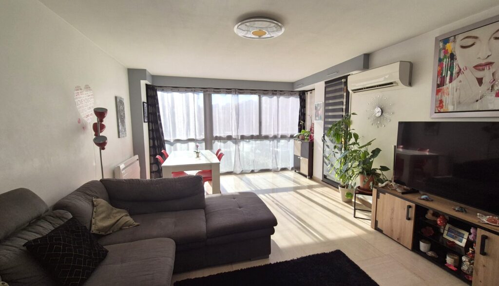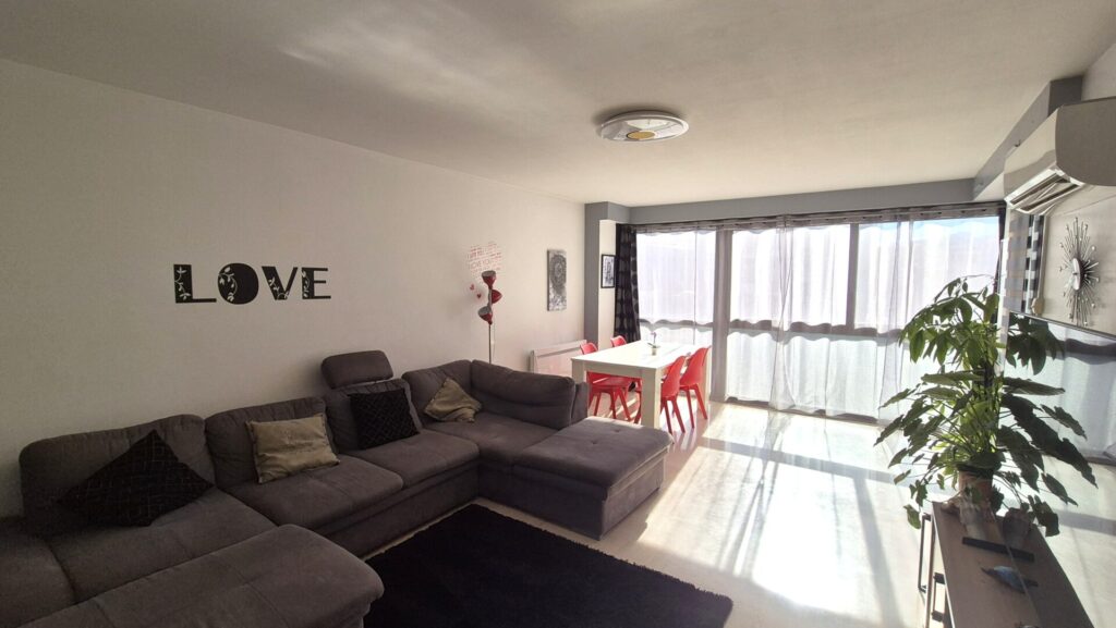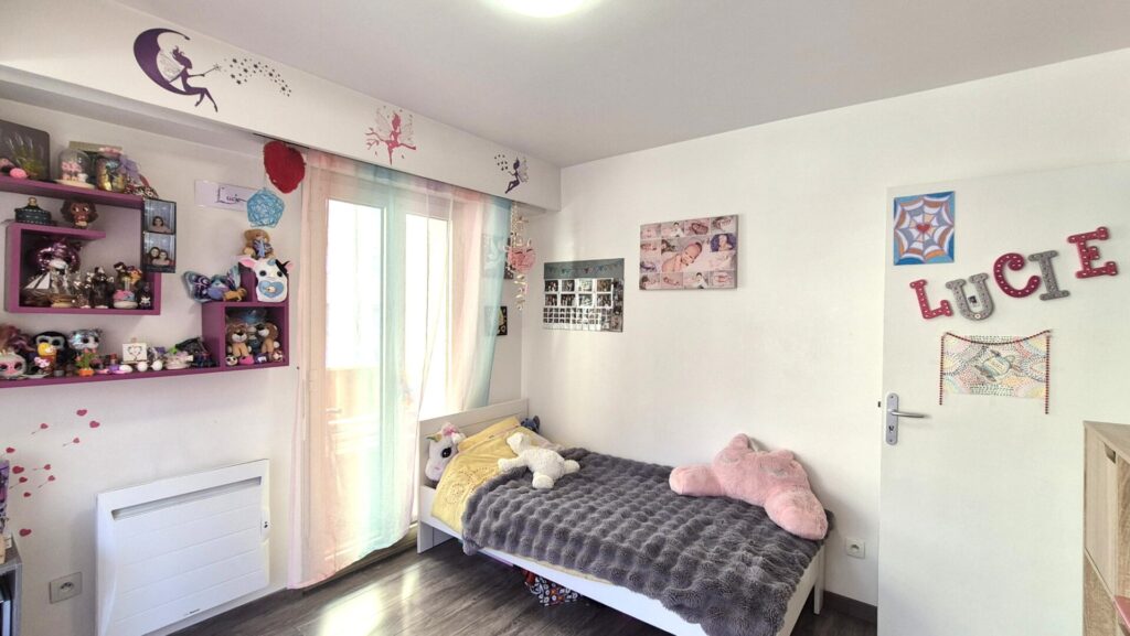 L’appartement bénéficie de nombreux placards de rangement. Le bien est en bon état général et nécessite peu de travaux. Toutes les pièces sont équipées de double vitrage et ouvrent sur le balcon terrasse, à l’exception de la chambre exposée Nord.