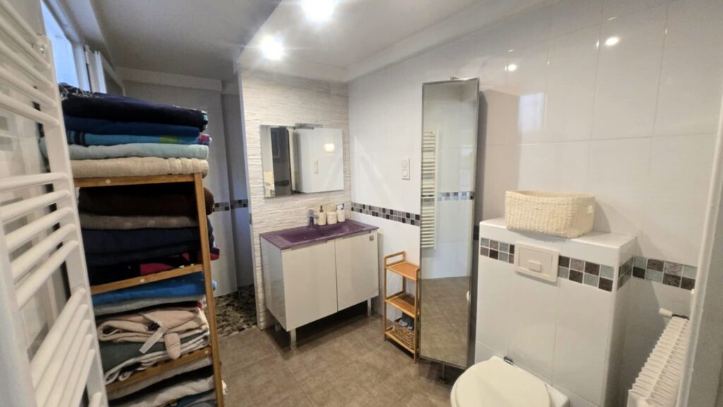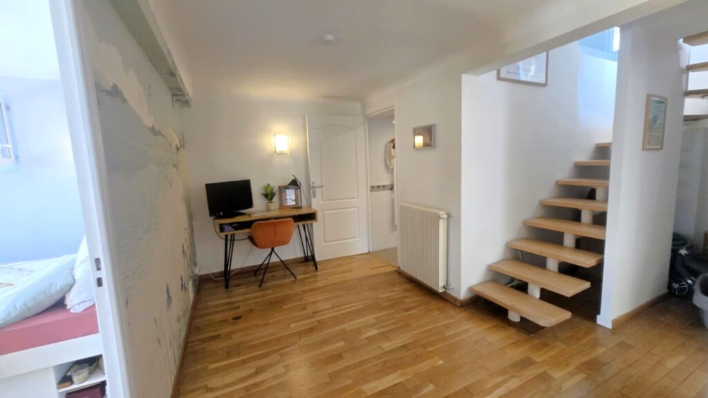 Au rez de chaussée, vous retrouverez 3 belles chambres avec placard de rangements, un coin bureau et une salle d’eau avec W.C.