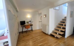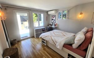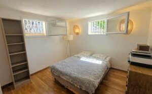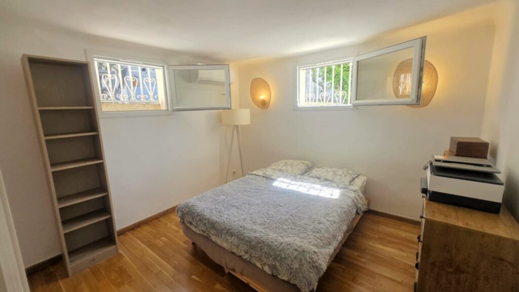 D’une superficie d’environ 130m² et sur un terrain de 400m², elle se compose d’un séjour lumineux avec cuisine US entièrement équipée et aménagée, d’une chambre avec rangements ainsi que d’une salle de bains avec W.C.