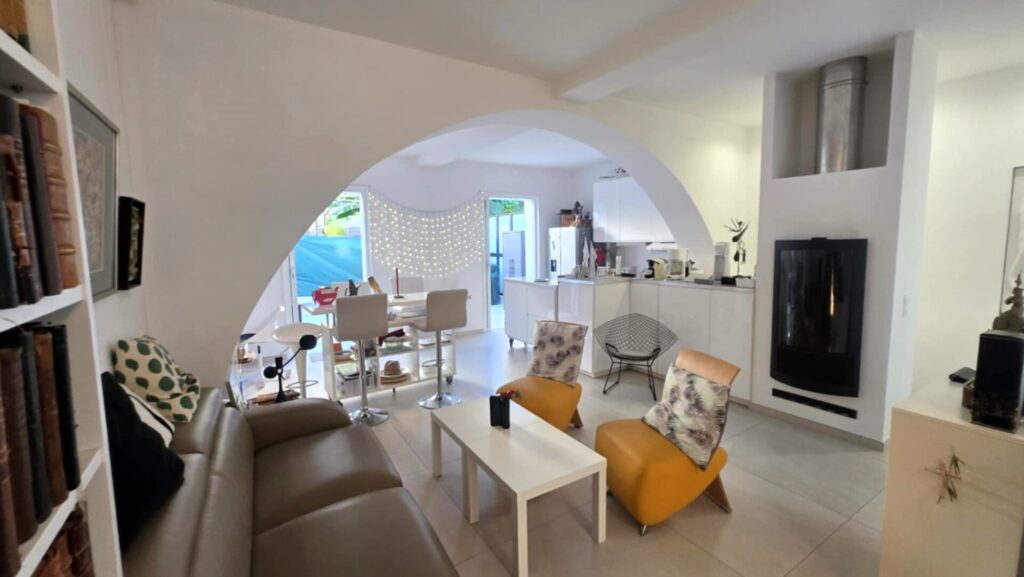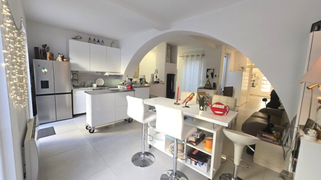 Jolie maison de ville avec beaucoup de charme, complètement rénovée avec goût. D’environ 98m² (Loi carrez à vérifier), cette maison se compose d’une entrée desservant un bureau, une belle et grande pièce de vie avec cuisine US et une salle d’eau avec WC.