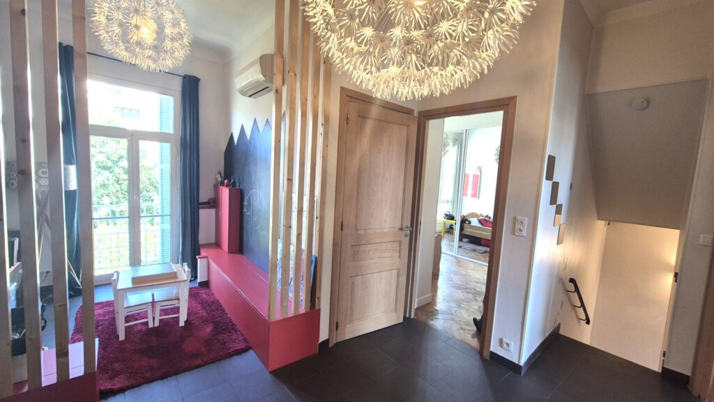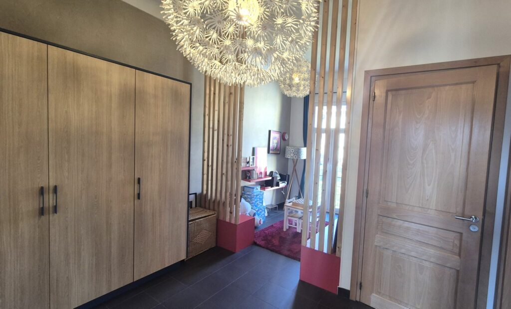 A l’étage, 3 chambres, 1 espace aménagé en salle de jeu, une salle d’eau avec WC et un grand dressing.